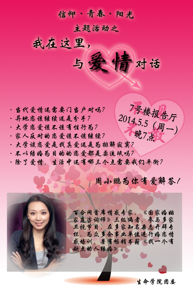 生命学院“信仰·青春·阳光”主题活动之“我在这里,与爱情对话”讲座预告