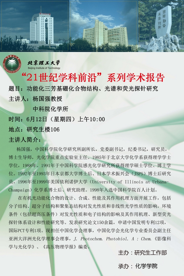 化学学院“21世纪学科前沿”杨国强教授学术报告预告