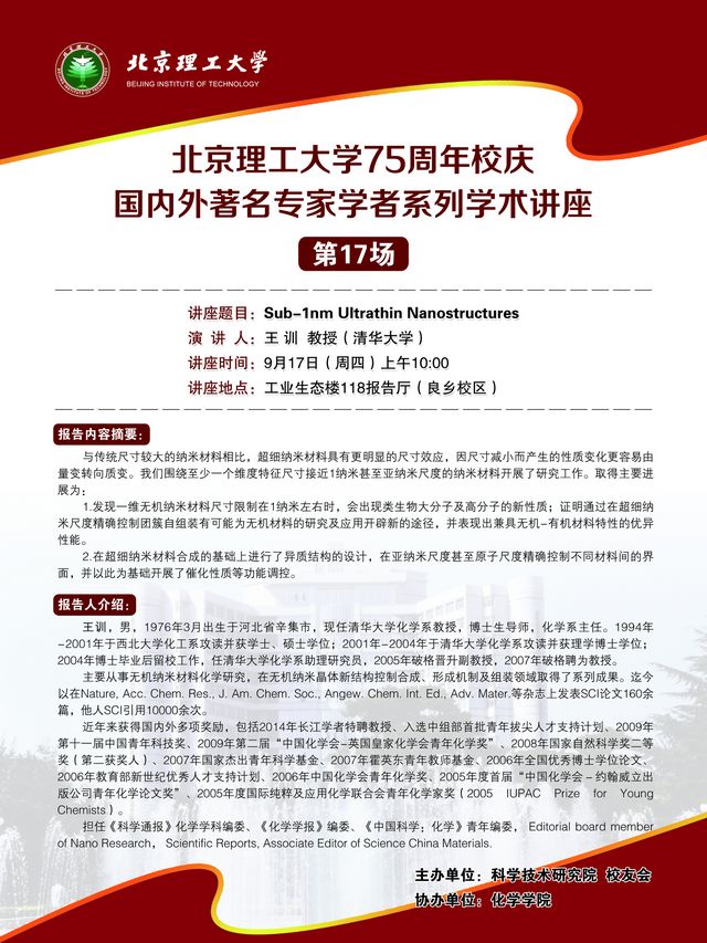 北京理工大学75周年校庆国内外著名专家系列讲座:王训教授