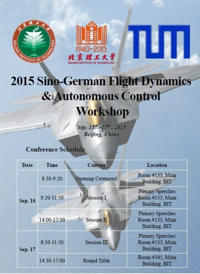 2015中德飞行动力学和自主控制研讨会系列学术报告预告
