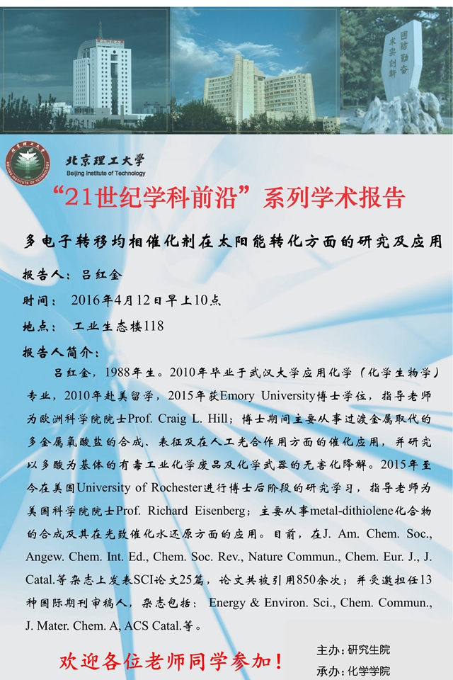 【化学学院】“21世纪学科前沿”吕红金学术报告通知
