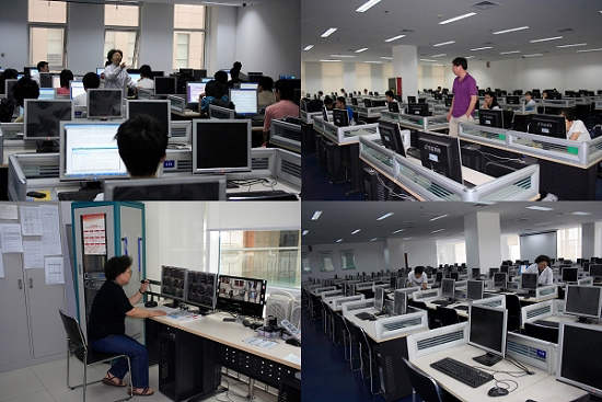 我校在良乡校区的计算机实验室位于良乡图书馆楼四层,实验室共有六个机房,600台计算机,总面积2700平方米。从2007年9月至今,实验室全天候为良乡校区学生提供服务,从周一到周日,每天早八点到晚十点连续开放,目前,实验室的管理人员有10名。