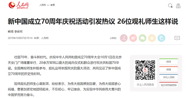 编辑:吴楠 审核:王征 阅读次数:原文标题:新中国成立70周年庆祝活动引发热议 26位观礼师生这样说