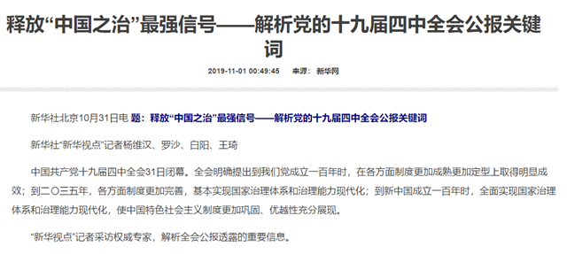 原文标题:释放“中国之治”最强信号——解析党的十九届四中全会公报关键词