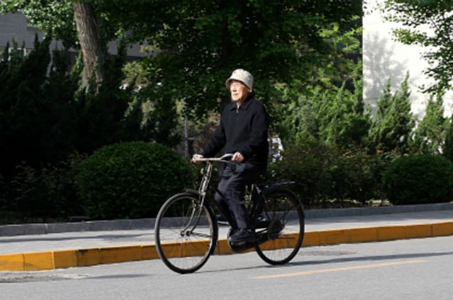 年过八旬骑车上班成为校园风景线