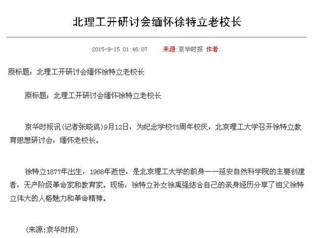 原文标题:北京理工大学校庆缅怀老校长徐特立