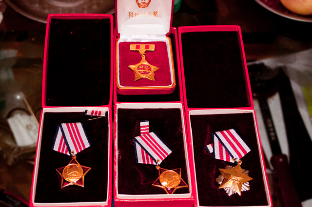 在谈到大学时代最主要的收获时,汪老先生小心翼翼地从卧室里挪出一箱子的荣誉证书。打开箱子,里面有国务院政府特殊津贴专家证书、国防科学技术一等奖证书、国防科学技术二等奖证书、二等功勋章、三等功勋章等,很难想象一位书法家竟在国防军工领域成绩斐然。汪老先生表示,这些证书的获得离不开母校大学四年教育的前期铺垫,他非常感激母校提供的教育机会。拿着这一份沉甸甸的获奖证书,汪老深有体会地告诫我们:经过几十年的军事科研经历,大学一、二年级的理论基础课和三、四年级的专业基础课非常重要,一定要把这些基础课掌握好。虽然今后工作过程中接触的项目并不一定是大学所学专业方向,但凭借扎实的基础课知识,在平时工作总有触类旁通、游刃有余的效果。